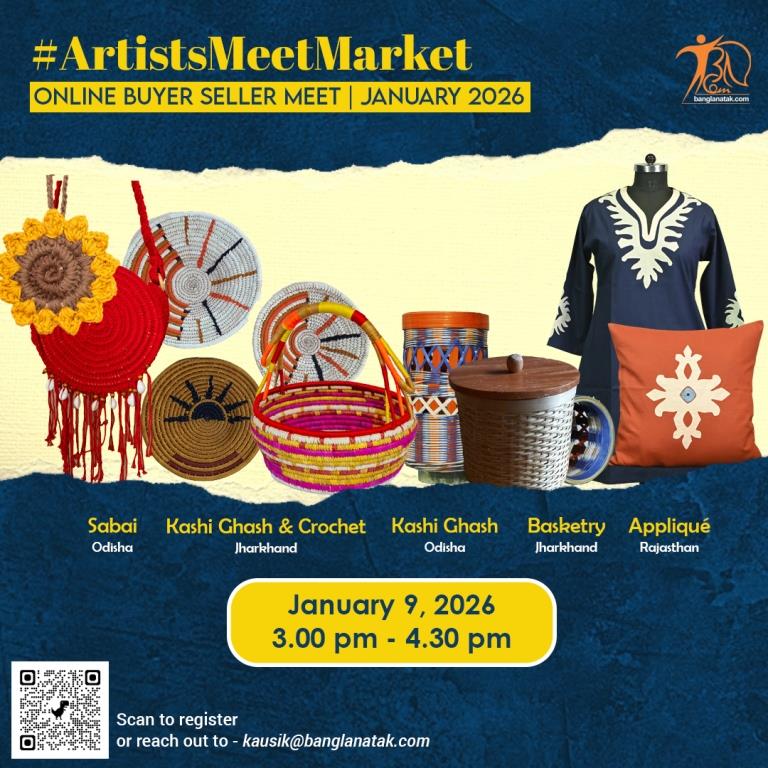The next edition of #ArtistsMeetMarket, scheduled for 09 January, will continue to provide a dedicated online space for rural and traditional artists. The session will feature artists working with Sabai Grass (Odisha), Kashi Ghash (Odisha), Kashi Ghash & Crochet (Jharkhand), and Basketry (Jharkhand). Buyers, designers, institutions, and craft enthusiasts are invited to register and join the sessions here.